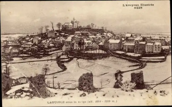 Ak Laguiole Aveyron, Gesamtansicht, Schnee