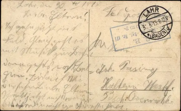 Zustand, siehe Scan, gelaufen, 1915 - ca 14 cm X 9 cm