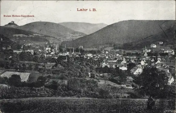 Ak Lahr im Schwarzwald Baden, Totalansicht mit Ruine Hohen-Geroldseck
