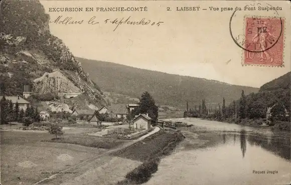 Ak Laissey Doubs, Vue prise du Pont Suspendu