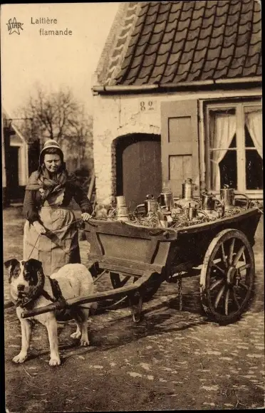 Ak Laitiere flamande, Milchfrau mit Hundekarren