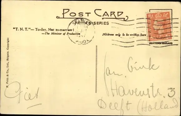 gelaufen 1947, leichter Eckknick links oben, sonst guter Zustand