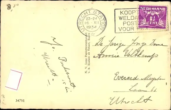 Zustand, siehe Scan, gelaufen, 1934 - ca 14 cm X 9 cm