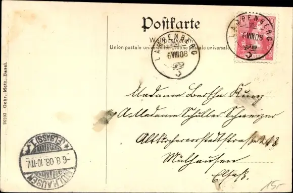 Zustand, siehe Scan, gelaufen, 1908 - ca 14 cm X 9 cm