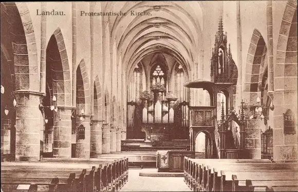 Ak Landau in der Pfalz, Protestantische Kirche, Innenansicht