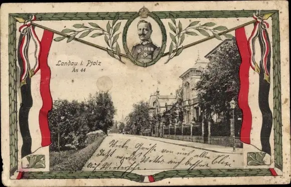 Ak Landau in der Pfalz, Straßenpartie, Kaiser Wilhelm II.