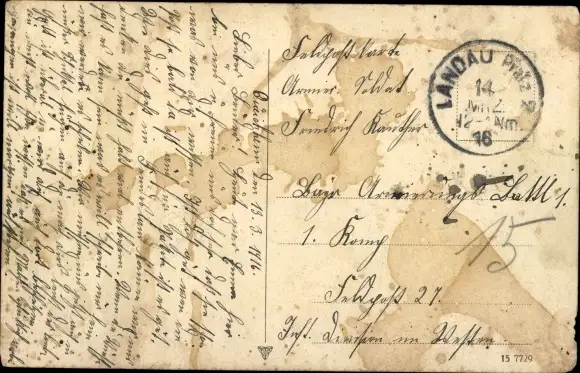 Zustand, siehe Scan, gelaufen, 1916 - ca 14 cm X 9 cm