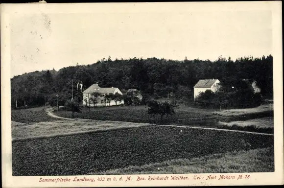 Ak Landberg, Wohnhäuser umgeben von Wald und Feld