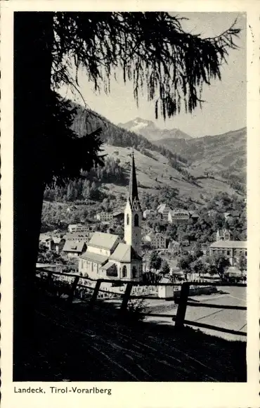Ak Landeck in Tirol, Durchblick zur Kirche