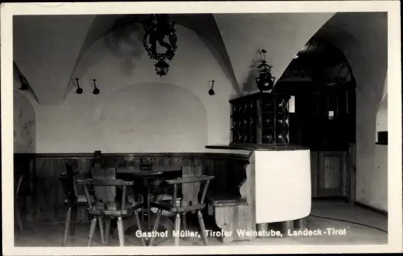 Ak Landeck in Tirol, Gasthof Müller, Tiroler Weinstube, Innenansicht