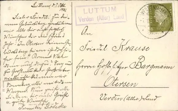 Ak Landpoststempel Luttum Verden (Aller) Land