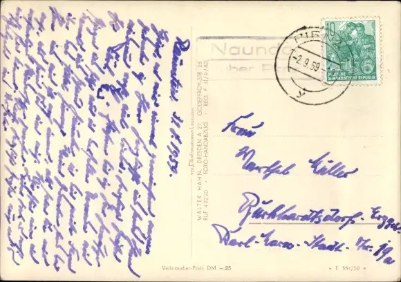 Zustand, siehe Scan, gelaufen, 1959 - ca 15 cm X 10 cm