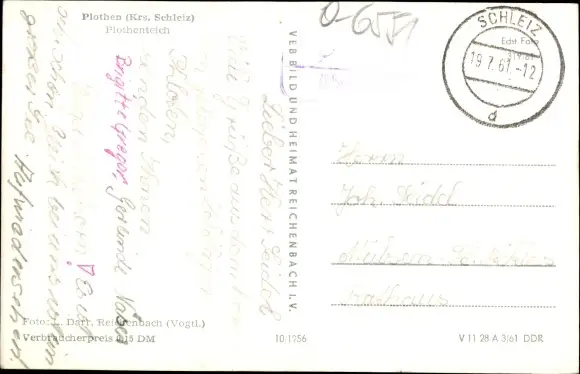 Ak Landpoststempel, Plothen in Thüringen, Plothenteich