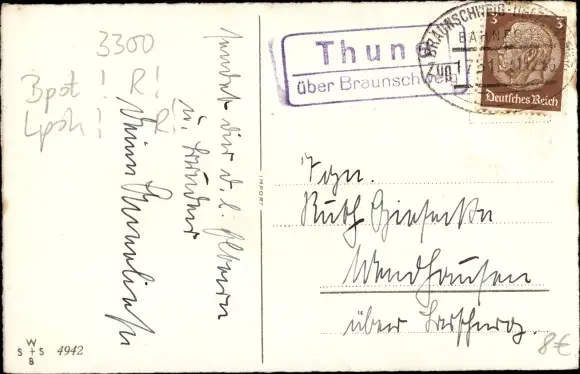 Ak Landpoststempel Thune über Braunschweig, Bahnpoststempel
