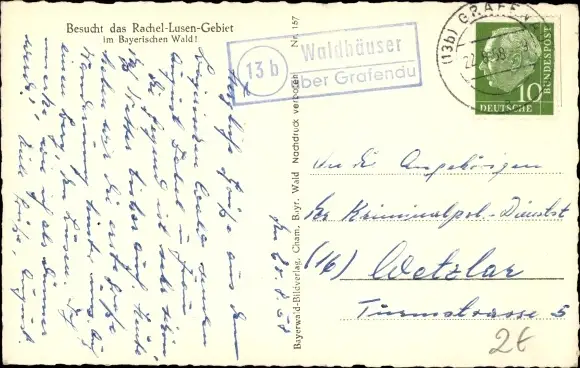 Ak Landpoststempel Waldhäuser über Grafenau, 13b