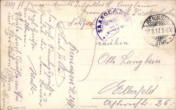 Zustand, siehe Scan, gelaufen, 1917 - ca 14 cm X 9 cm