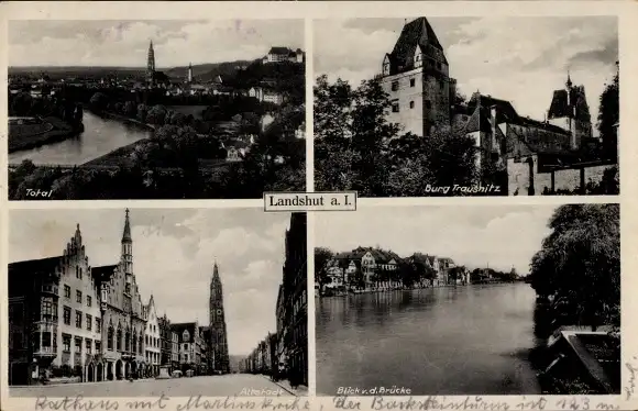 Ak Landshut in Niederbayern, Burg Trausnitz, Altstadt, Totalansicht, Rathaus, Martinskirche