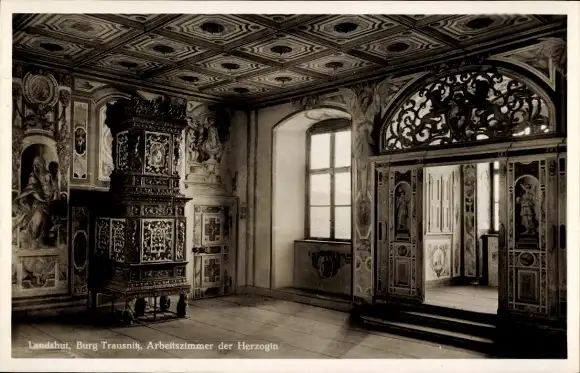 Ak Landshut in Niederbayern, Burg Trausnitz, Arbeitszimmer der Herzogin