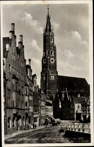 Ak Landshut in Niederbayern, Giebelhäuser, Altstadt, St. Martins-Kirche