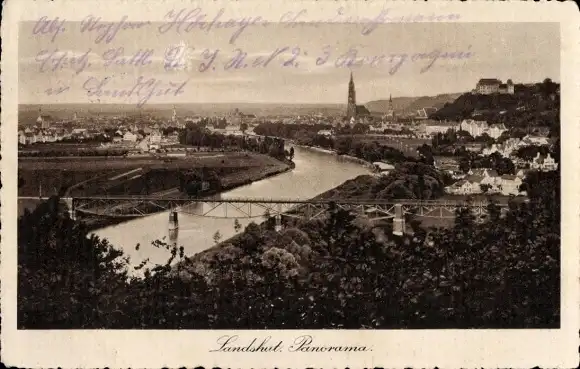 Ak Landshut in Niederbayern, Panorama, Brücke