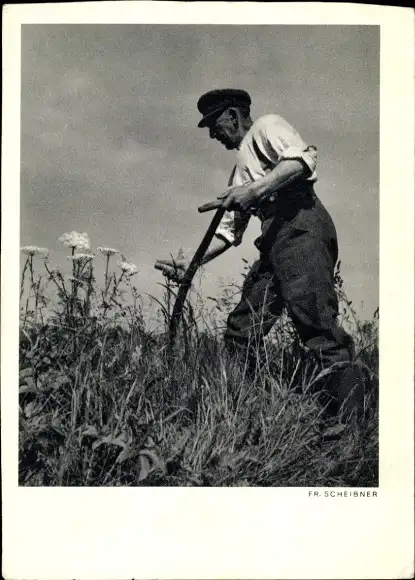 Ak Landwirtschaft, Bauer mit Sense bei der Mahd