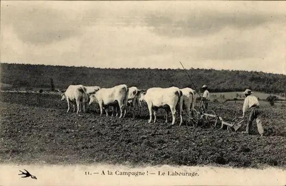 Ak Landwirtschaft, Pflug, Rinder, Bauer