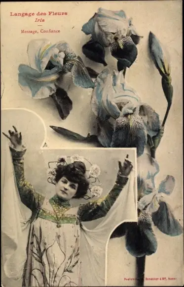 Ak Langage des Fleurs, Blumensprache, Iris, Message, Confiance