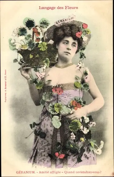 Ak Langage des Fleurs, Geranium, Blumensprache, Frau