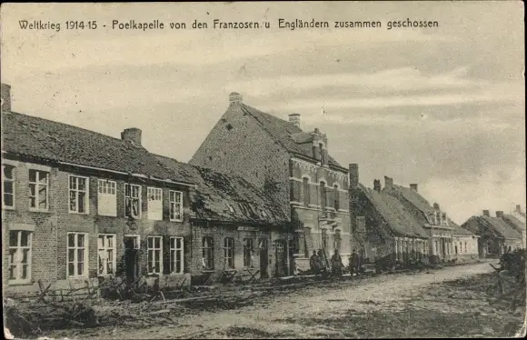 Ak Langemarck Langemark Poelkapelle Westflandern, v. Franzosen u. Engländern zerstörte Häuser