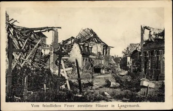 Ak Langemarck Langemark Poelkapelle Westflandern, zerstörte Häuser