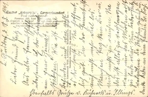 Ak Langenchursdorf Callenberg in Sachsen, Gasthof Erbgericht, Gastzimmer