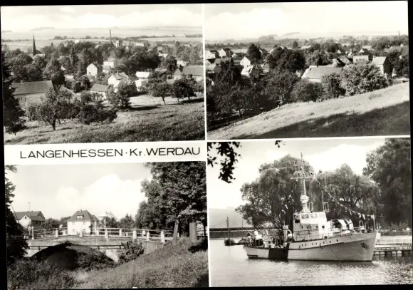 Ak Langenhessen Werdau in Sachsen, Teilansichten, Brücke, Schiff am Anleger