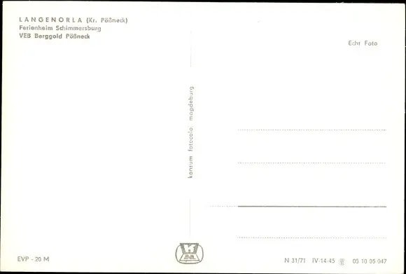 Ak Langenorla in Thüringen, Ferienheim Schimmersburg, VEB Berggold Pößneck