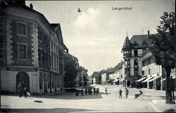Ak Langenthal Kt. Bern Schweiz, Straßenpartie, Bank