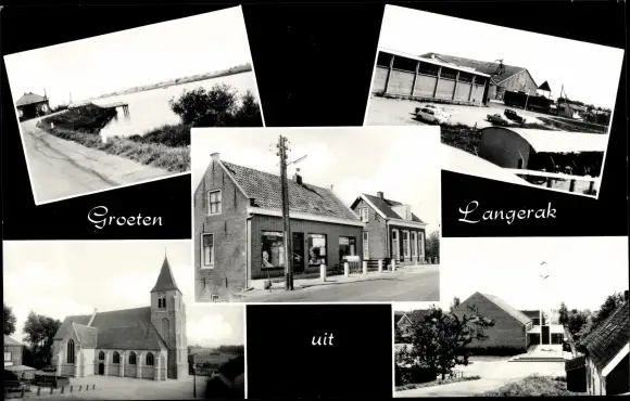 Ak Langerak Südholland, Kirche, Straßenpartie, Uferstraße mit Anleger