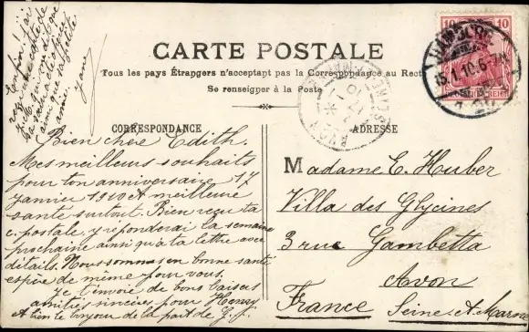 Zustand, siehe Scan, gelaufen, 1910 - ca 14 cm X 9 cm