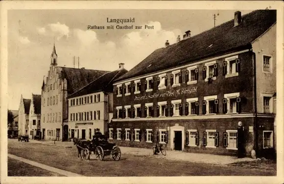 Ak Langquaid in Niederbayern, Rathaus, Gasthof zur Post