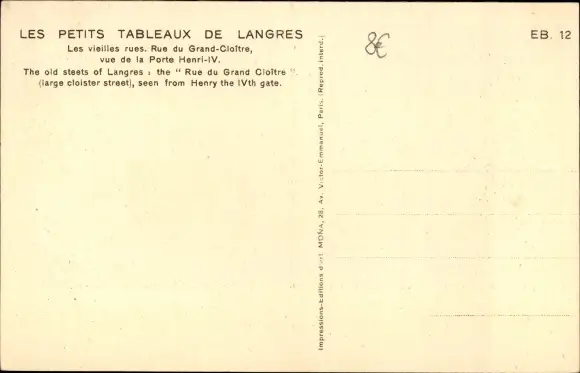 Ak Langres Haute Marne, Rue du Grand-Cloitre, gesehen von Porte Henri-IV