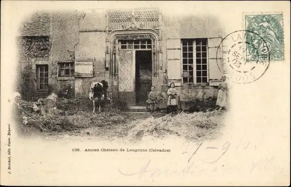 Ak Langrune Calvados, Ancien Château de Langrune, Kuh, Bauernfamilie