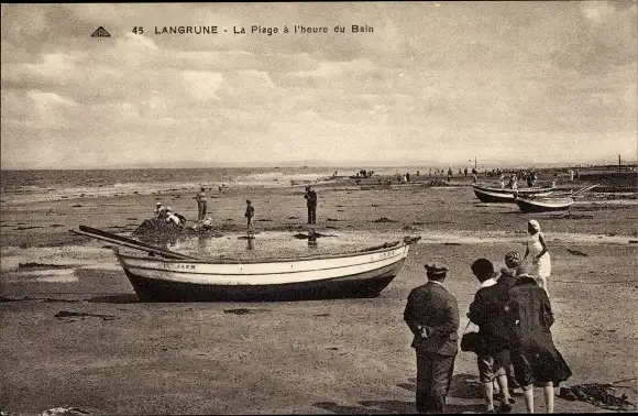 Ak Langrune Calvados, La Plage a l'heure du Bain