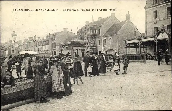 Ak Langrune sur Mer Calvados, La Pierre a Poisson et le Grand Hotel