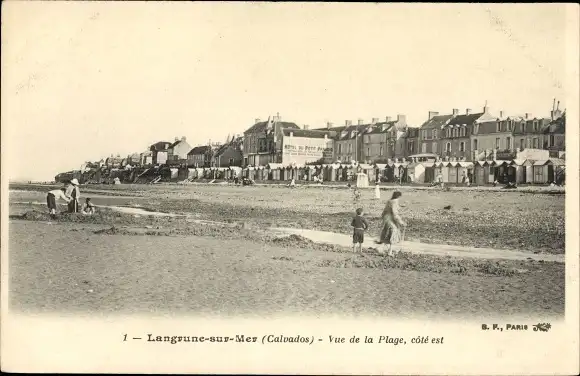 Ak Langrune sur Mer Calvados, Vue de la Plage, côté est