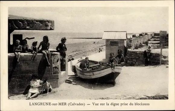 Ak Langrune sur Mer Calvados, Vue sur la digue prise du blockauss