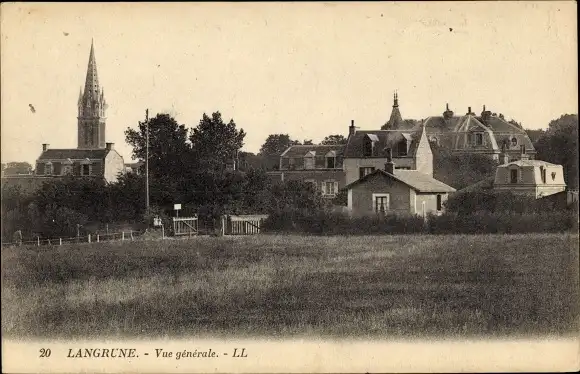 Ak Langrune sur Mer Calvados, vue générale, Ortsansicht, Kirchturm