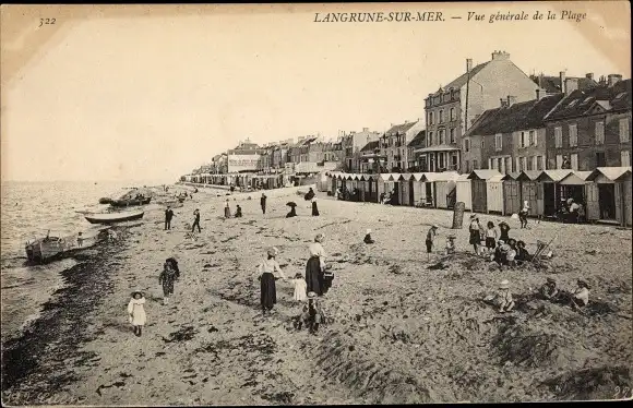 Ak Langrune sur Mer Calvados, vue générale de la Plage