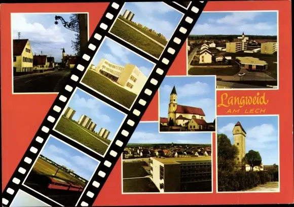 Ak Langweid am Lech, Teilansichten, Hochhäuser, Kirchen