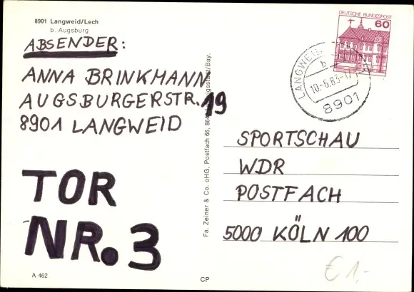 Zustand, siehe Scan, gelaufen, 1983 - ca 15 cm X 11 cm