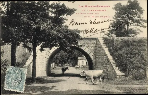 Ak Lannemezan Hautes Pyrénées, Le Pont d'Espagne et la Route d'Arreau