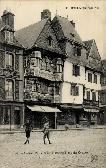 Ak Lannion Côtes d’Armor, Fachwerkhäuser in Lannion