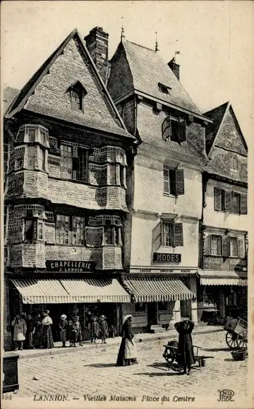 Ak Lannion Côtes d'Armor, vue générale des vieilles Maisons, Place du Centre